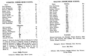 Walton Walton Junior High School Click on photo to enlarge and do slide show More recent photo of Walton School The Walton Cheerleaders Getting ready for the big game with Webster! Decorating for the Walton Class Party All dressed up for the Walton Class Party The Large Walton Chorus A very good Walton Band Marie and Paul – at Walton School Walton School Newspaper Page 1 Walton School Newspaper Page 2 Walton School Newspaper Page 3 Webster Walton Game Under The Lights! Webster Walton Program 1 Webster Walton Program 2 Webster Walton Game Results Like Loading...